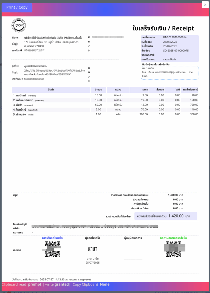 ใช้งานง่าย รวดเร็ว และ มีประสิทธิภาพจาก ครอบคลุมเรื่องงานขาย ออกใบเสนอราคา ใบสั่งขายสินค้า เชื่อมต่อ Bank Gateway ตรวจสอบการชำระเงินอัตโนมัติ ออกใบเสร็จรับเงินอัตโนมัติ หรือจะออกโดยพนักงานก็สะดวก รองรับการขายสินค้าหน้าร้านโดยตรง
